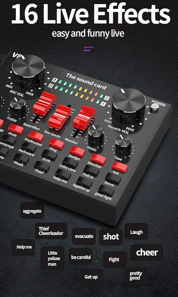 Specifications of QIYI Live Sound Card with Bluetooth, Audio Mixer USB External Sound Card for Mobile, Computer, Audio Interface, Live Recording, Home KTV.